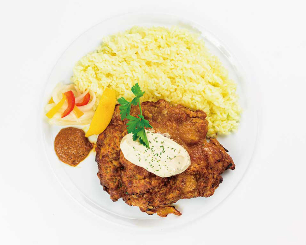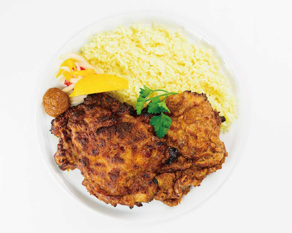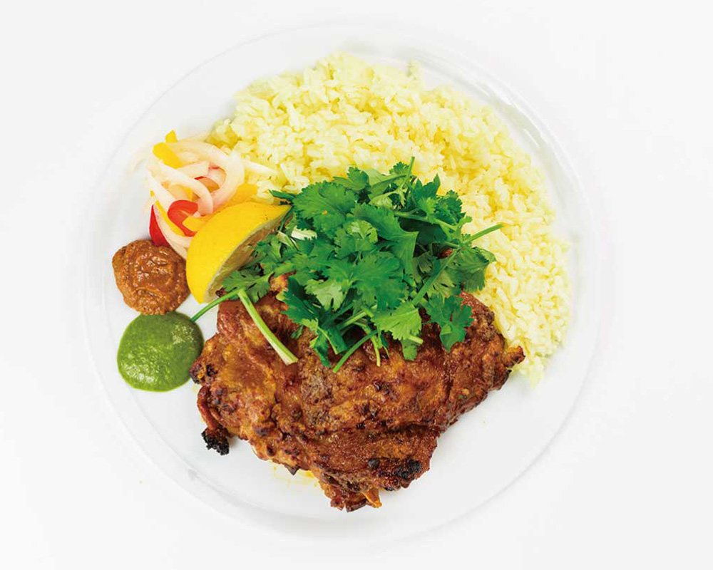 ピリ辛のタンドリーチキンステーキに爽やかな